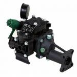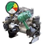 UDOR隔膜喷雾泵缸头部分主要由一隔膜片将被输送的液体和工作液体分开,当隔膜片向传动机构一边运动,泵缸内工作时为负压而吸入液体,当隔膜片向另一边运动时,则排出液体。